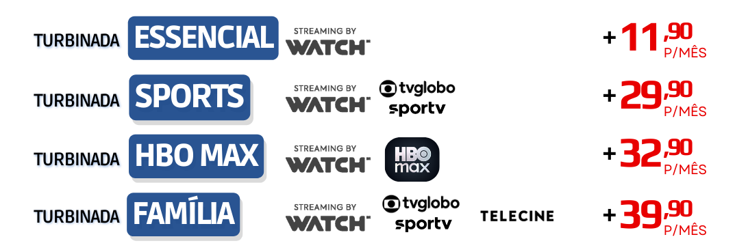*Oferta por 3 meses, depois R$ 179,90/mês. Preços já incluem R$ 10 de desconto por pagamento em dia